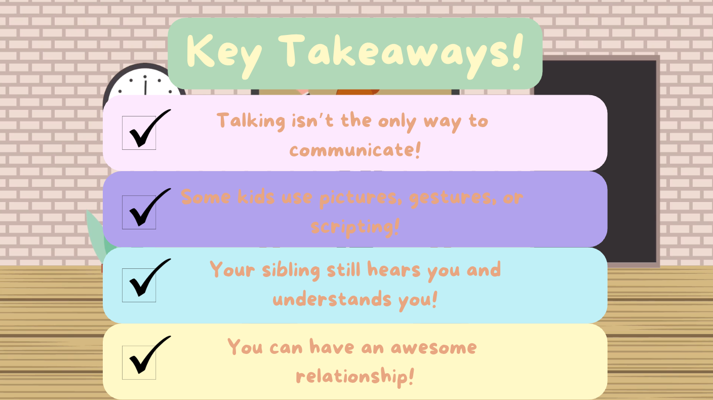 The course includes 8 thoughtful modules that explore key topics like sensory differences, communication, emotions, and how to be a supportive sibling, always in kid-friendly, compassionate language. Each module features videos, reflection prompts, and creative activities that encourage curiosity and connection. A social story is also included to complement the course content and support deeper understanding.