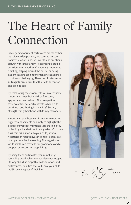 The Sibling Empowerment Certificates are more than a reward, they’re a tool for building emotional connection, self-worth, and sibling relationships that last. Each certificate is a tangible reminder that their efforts are seen, appreciated, and truly matter.